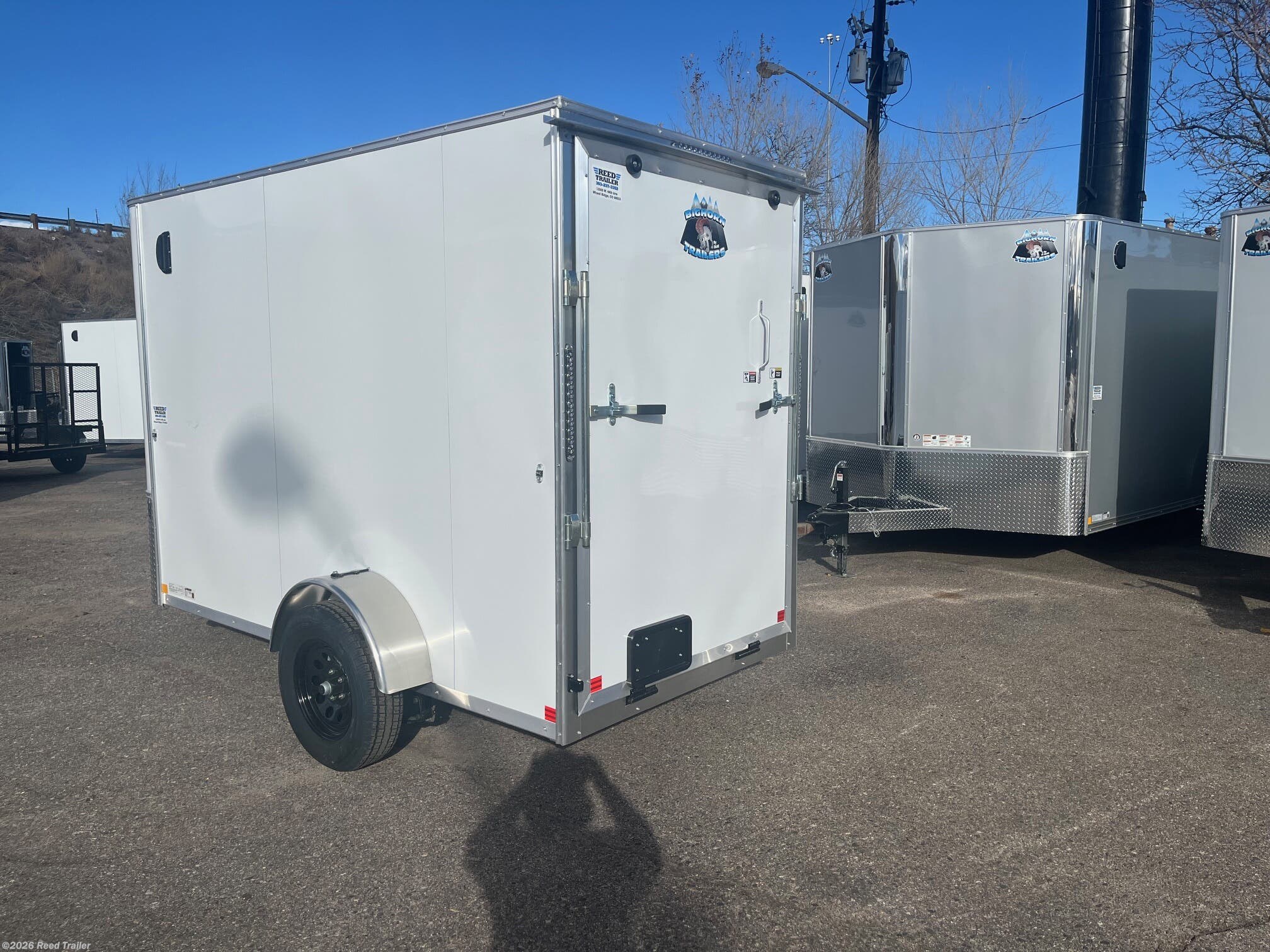 This is a new 2026 5x10+v-nose R&M Big Horn enclosed cargo trailer on sale at our Wheat Ridge store---FOR SALES please call in advance (303) 237-3352