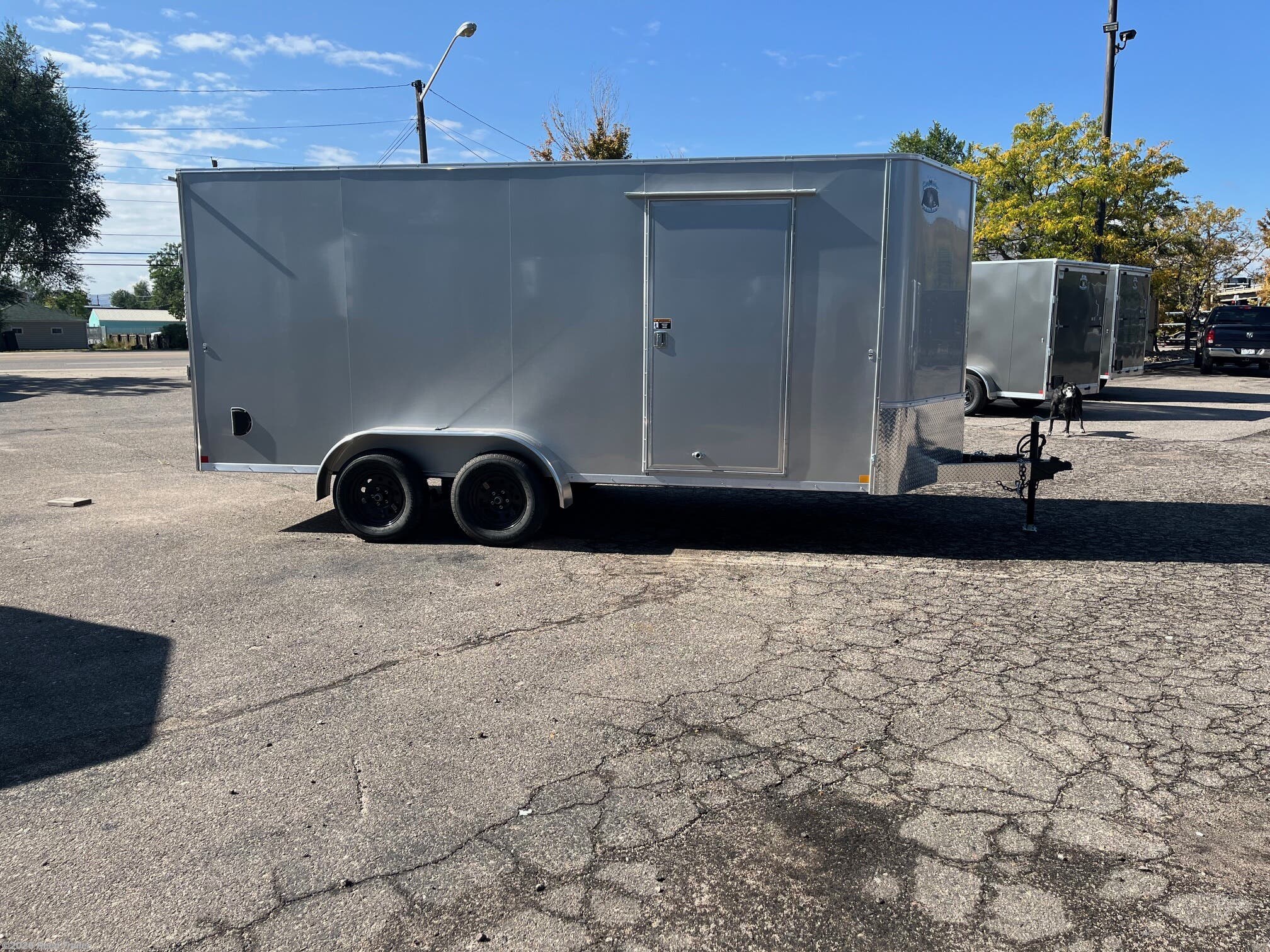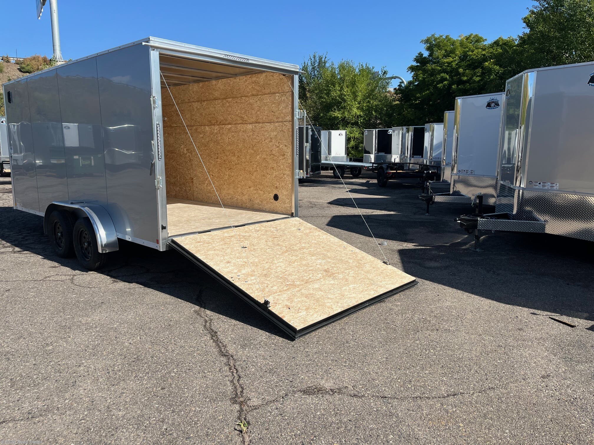 This is a new 2026 7x16+v-nose R&M Standard Grade enclosed cargo trailer Tandem Axle Flat roof V nose located at our Wheat Ridge store on sale ---FOR sales please call in advance!
