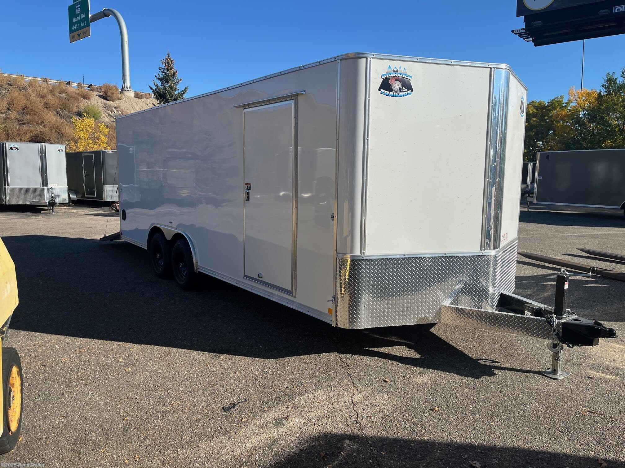 This is a new 2026 8.5x20+v-nose R&M Big Horn enclosed cargo (car hauler) trailer on sale due to slight ding in front v-nose---FOR sales please call in advance